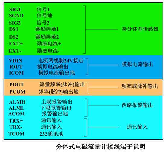 四、污水管網現場收方計量表轉換器接線端子接線圖說明