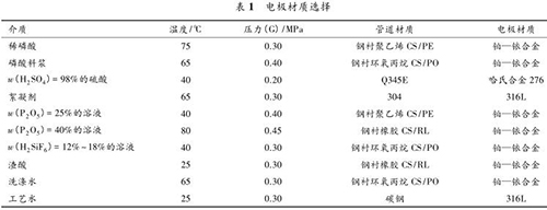 國內某 300 kt/a 磷酸裝置中,含有不同溫度、不同壓力、不同濃度的多種酸液,包括:稀磷酸、濃硫酸、磷酸料漿、絮凝劑、P 2 O 5 溶液、H 2 SiF 6 溶液、渣酸、洗滌水、酸性循環水、工藝水等。如此復雜的工藝介質對流量計的選型要求很高,酸液的配比、濃度、溫度、雜質、溶解氣體以及流速等都會影響接液材質的耐腐蝕性。