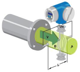 管道式電磁流量計(jì)使用法拉*電磁感應(yīng)定律進(jìn)行流量測(cè)量。法拉*定律指出,每當(dāng)長度為“ l”的導(dǎo)體以垂直于磁場“B”的速度“v”運(yùn)動(dòng)時(shí),就會(huì)在相互垂直的方向上感應(yīng)出電動(dòng)勢(shì)“e”,其方向?yàn)?br /> e = Blv……(eq1)