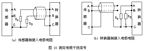 按圖7-10所示及上文"電極接觸電阻的測量"所測得兩電極的大體電阻值RA、RR,分別按圖a、b接入電路所測得零點之差應在滿度值1%或其基本誤差范圍以內(nèi)。
